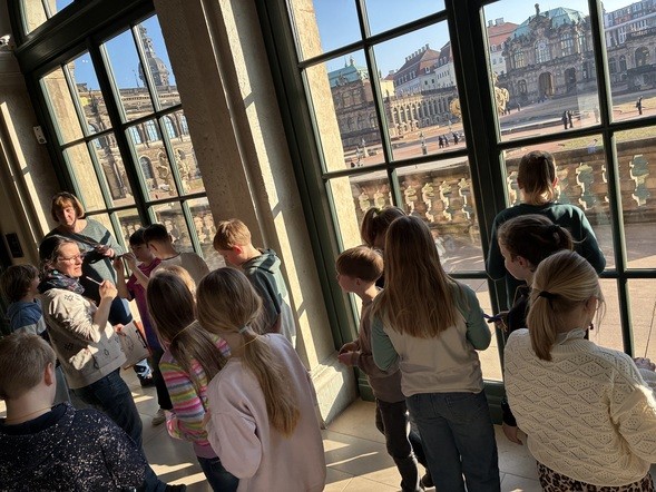 Im Rahmen des Sachunterrichts sind wir mit dem Zug nach Dresden gefahren. Dort besuchten wir einen Teil des Zwingers. An diesem Tag ging es um das Thema "Navigation". Dafür schauten wir uns verschiedene Ausstellungsstücke an und durften anschließend selbst markante Punkte im Zwinger finden und mit Hilfe eines Kompasses auch eine eigene Karte davon erstellen.